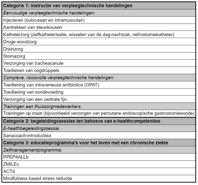 - Educatieprogramma’s voor het leven met c.q. managen van een chronische ziekte