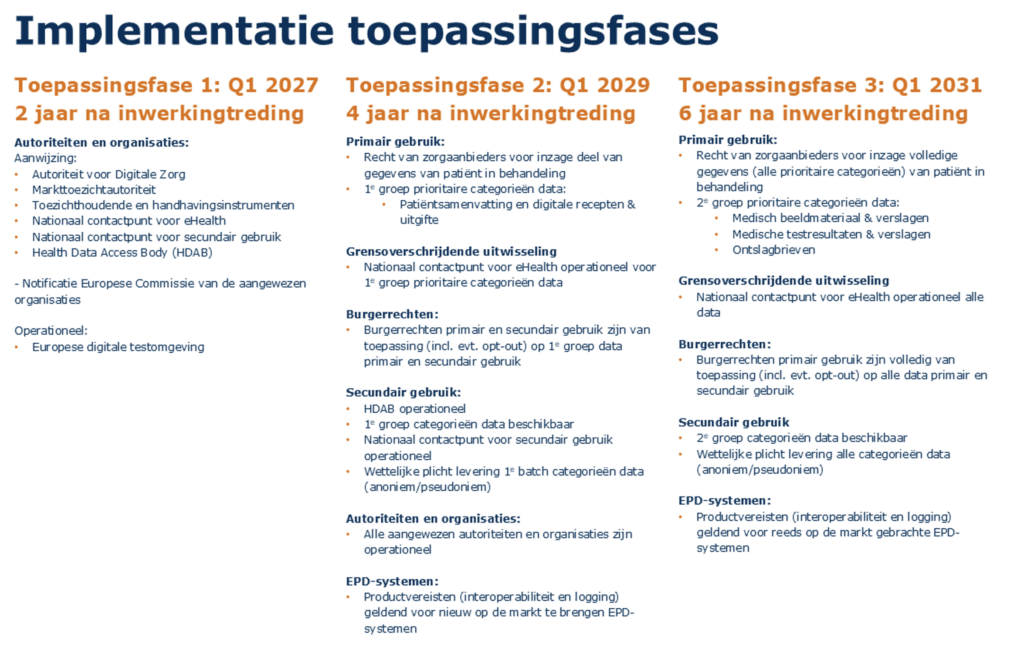 Bron www.datavoorgezondheid.nl. Zie voor nadere informatie drie recente VWS webinars over EHDS