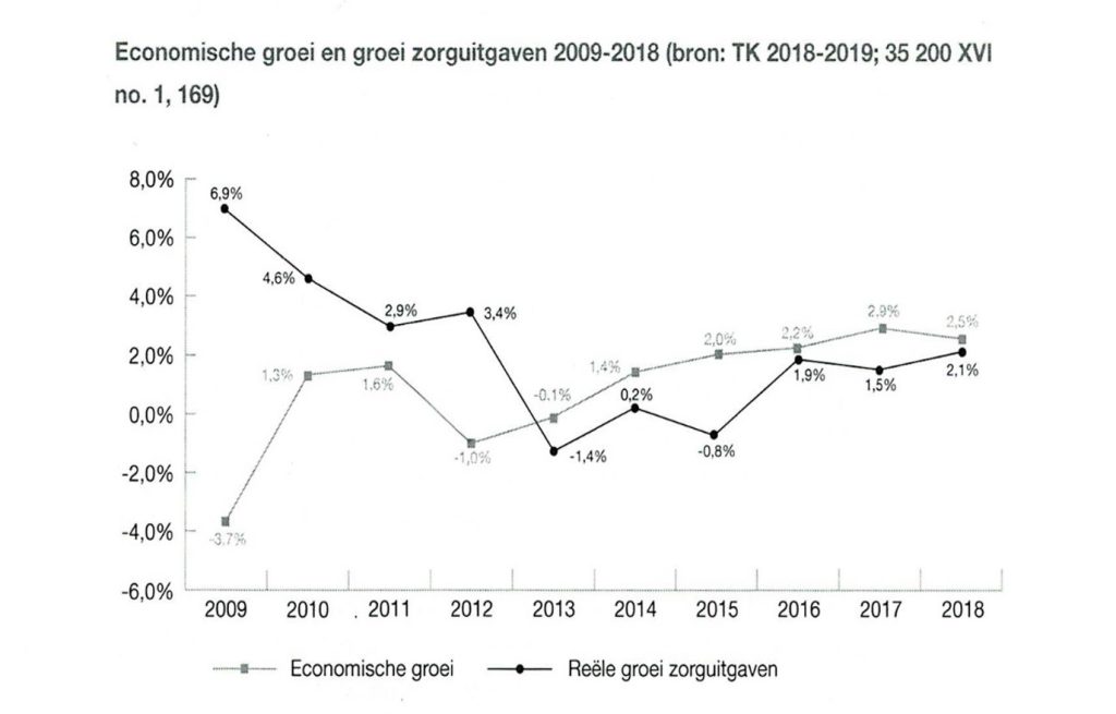 Ik illustreer dit met twee actuele beleidsvraagstukken. Ten eerste gaat de WRR in haar recente advies ervan uit, dat kostenbeheersing in de zorg niet is gelukt. Deze adviesraad schrijft: Al sinds de jaren zeventig groeien de zorguitgaven van de overheid gemiddeld genomen sneller dan ons totale inkomen. Wel nu, dat klopt niet met de conclusie in deel I dat in 2018 uitkwam en die in deel II dat na het WRR-advies verscheen. Daarmee valt een belangrijke pijler weg onder dit advies.